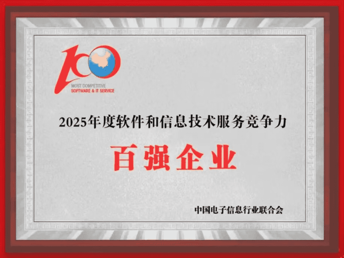 2025年10月15日,,,中国电子信息行业联合会权威揭晓“2025年度软件和信息技术服务竞争力前百家企业”名单。。。。中国软件百强企业评选活动是由工业和信息化部全程指导、、、、中国电子信息行业联合会牵头组织发起,,是反映中国软件产业发展最高水平的“风向标”。。。厦门一竞技网络技术股份有限公司(以下简称“一竞技”或“公司”)凭借自身在软件技术领域的卓越表现与杰出创新能力,,,,第六次入选“全国软件和信息技术服务竞争力前百家企业”称号。。